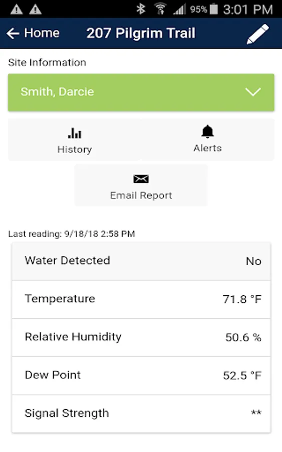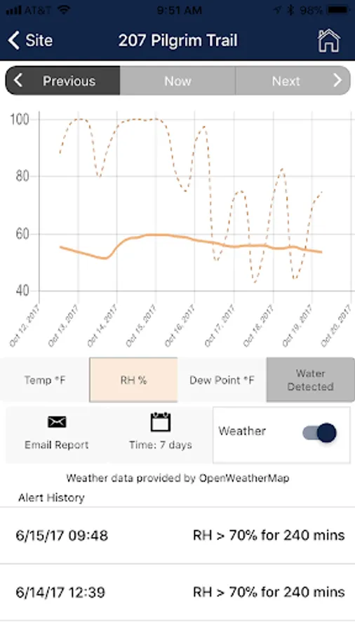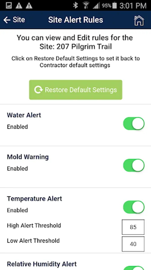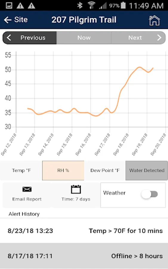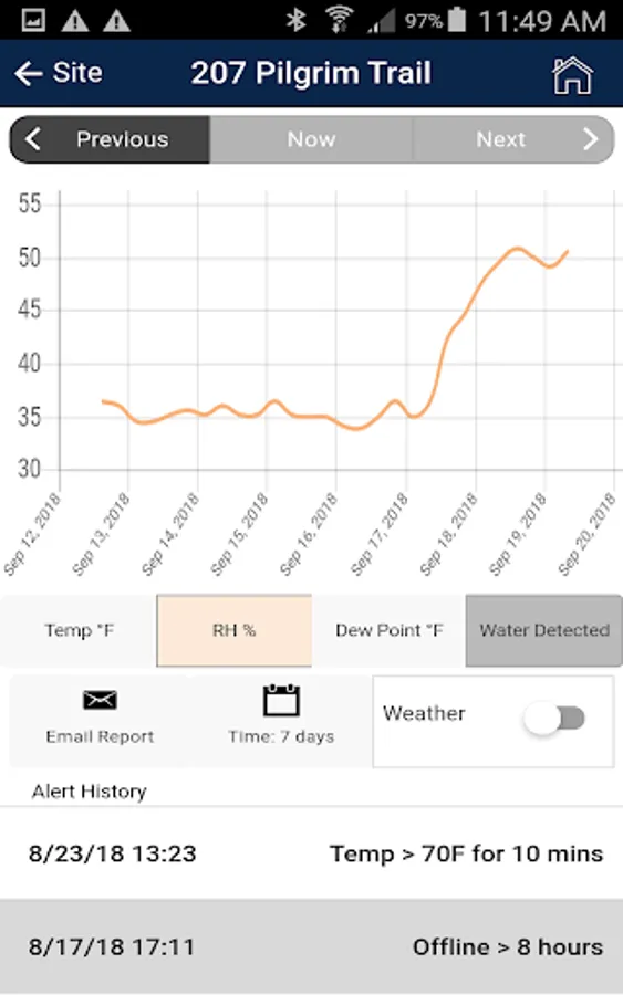 • Receive mold and humidity alerts when relative humidity levels exceed recommended levels.