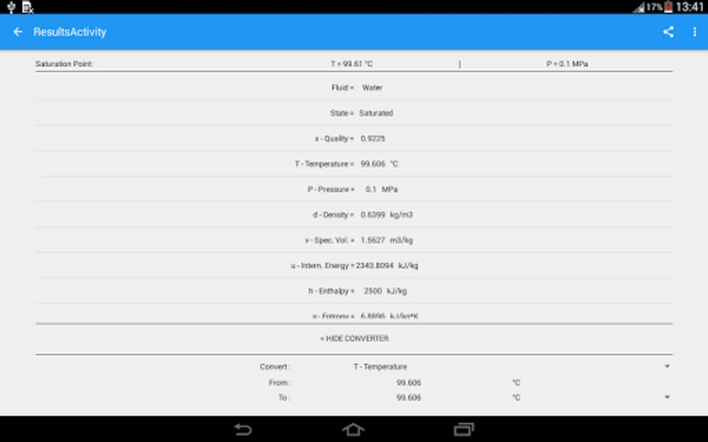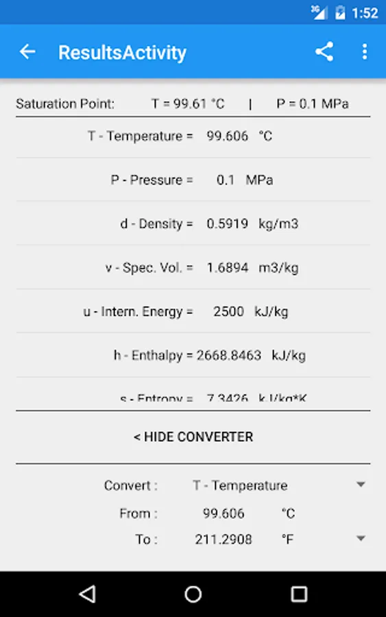 Engineering students and lecturers, save time and effort with ThermoProps. ThermoProps is an application aiming to make it simpler and easy to find all thermophysical properties of fluids. This application is useful for engineering students/lecturers at Mechanical, Chemical, Mechatronics, Manufacturing, Material like Engineerings who are using traditional way to calculate desired fluid properties by using thermodynamic tables. Get rid of that tired and time expensive way using ThermoProps and save time and effort to deal with more valuable aspects of your job.