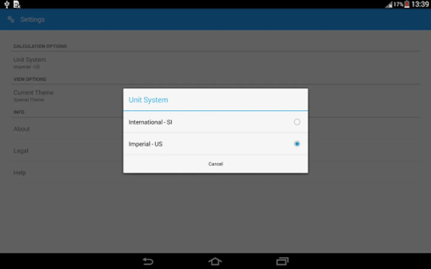 - Options to work with both International-SI(metric) and British/American-US systems of units
