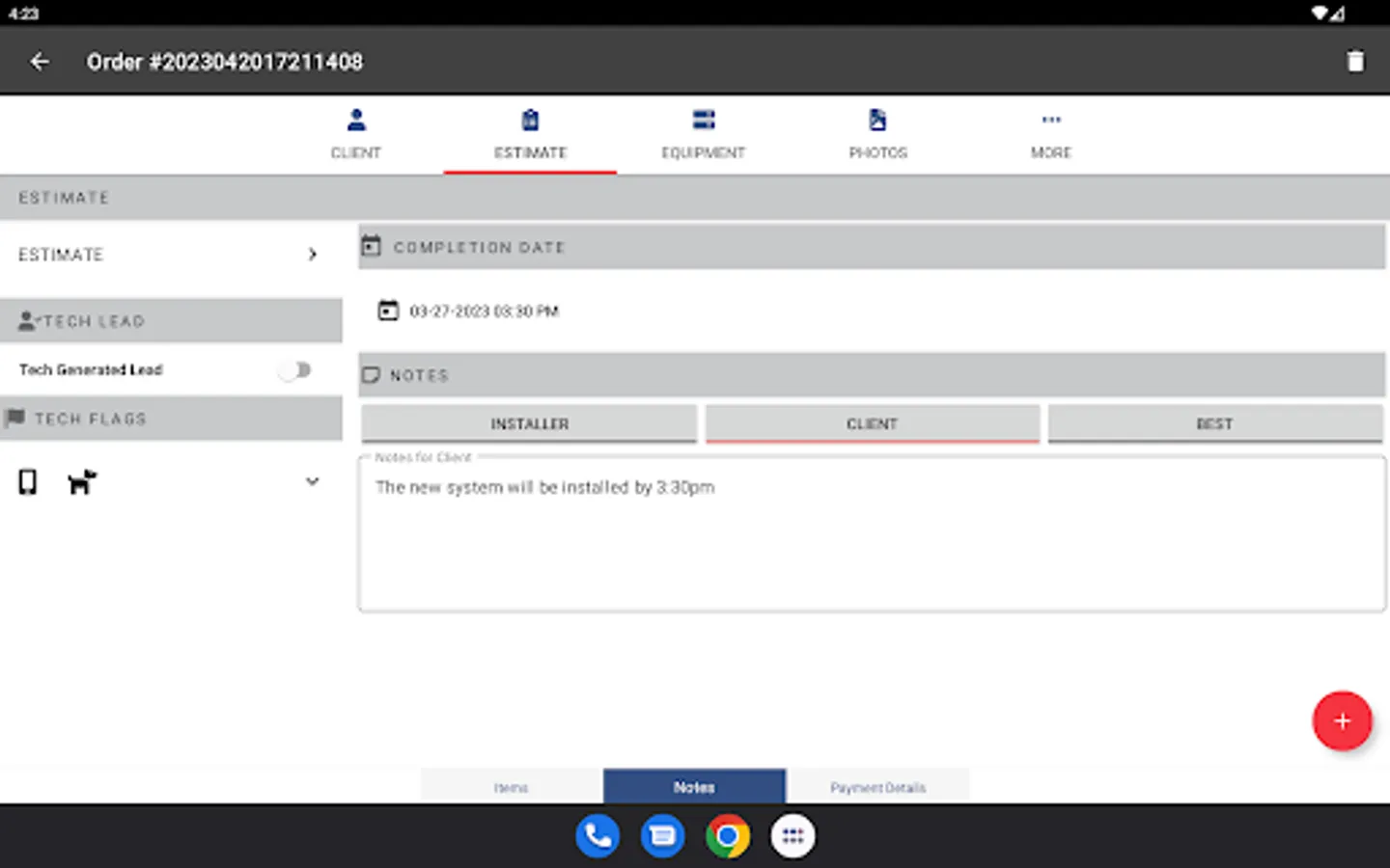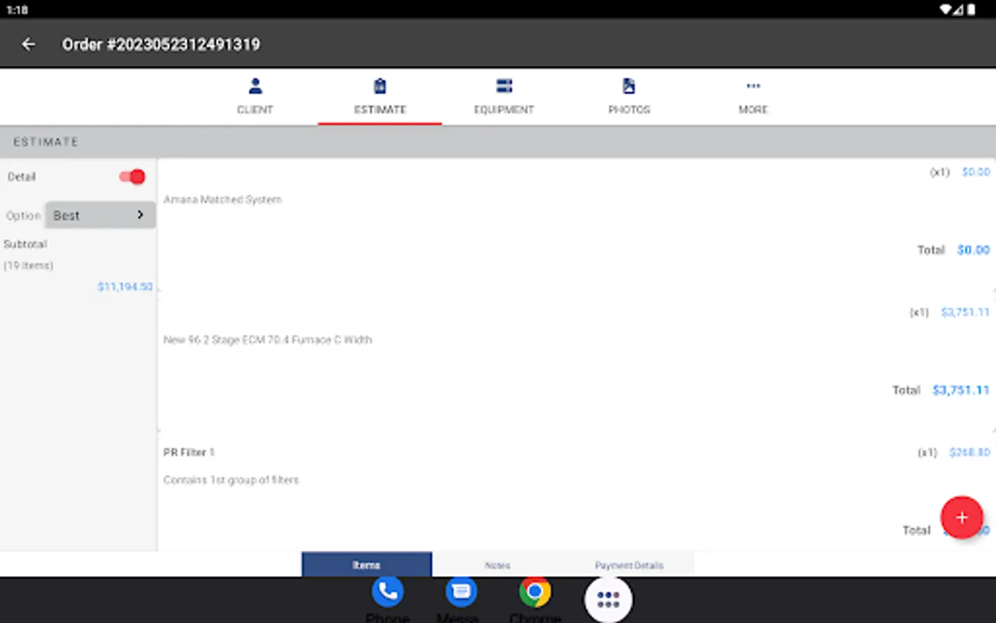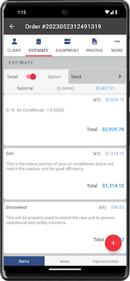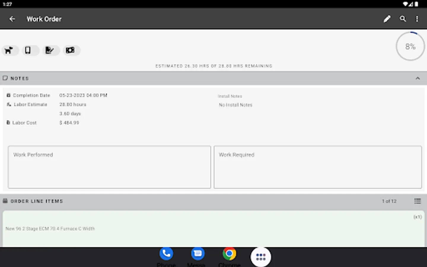 -Add: Order Options, Line Items, Units, Units Worked On, Site Photos, Items