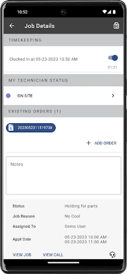 -Create/View Calls, add Jobs and Orders to that Call online & offline