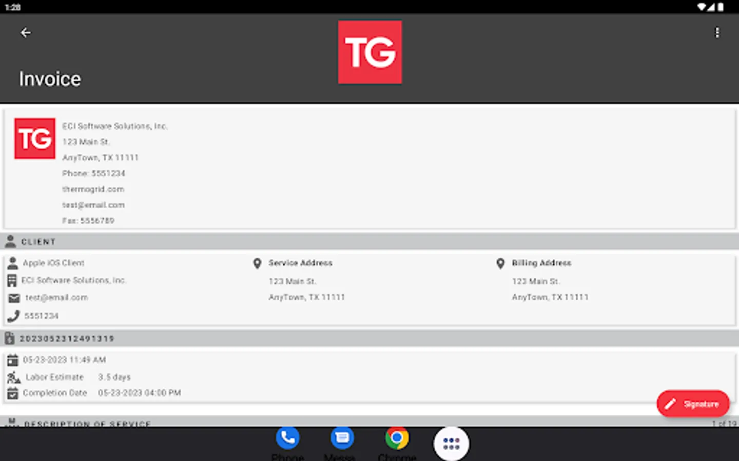 Used, Job Documents, Work Order, Collect Signature all while online or offline