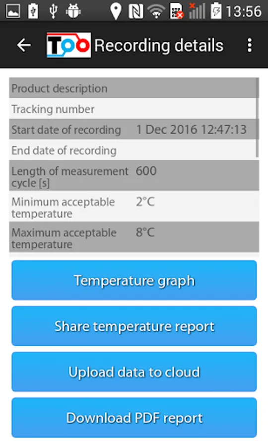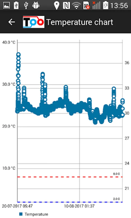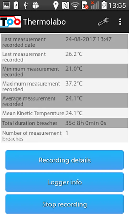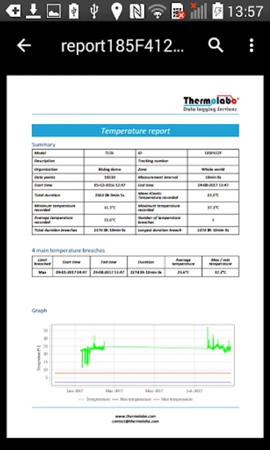 The application enables to access the temperature measurements from the Sensolabo® NFC dataloggers from any Android smartphone equipped with the NFC technology. It also allows easy set-up of temperature limits.