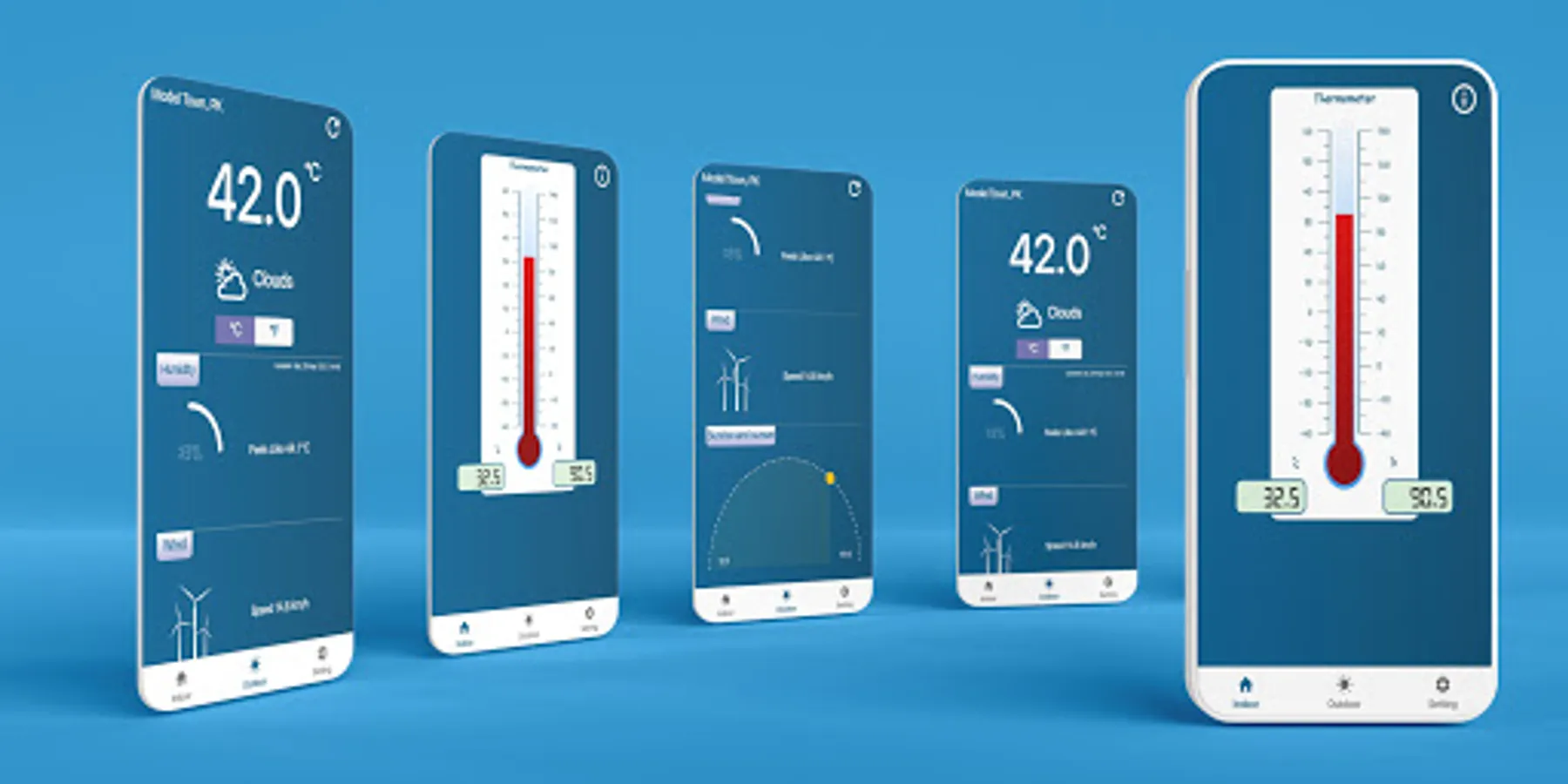 Ui for thermometer looks like elctronic thermometer. Thermometer for room temp app to calculate your room temperature.