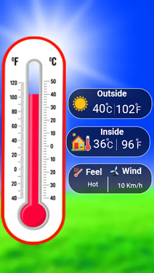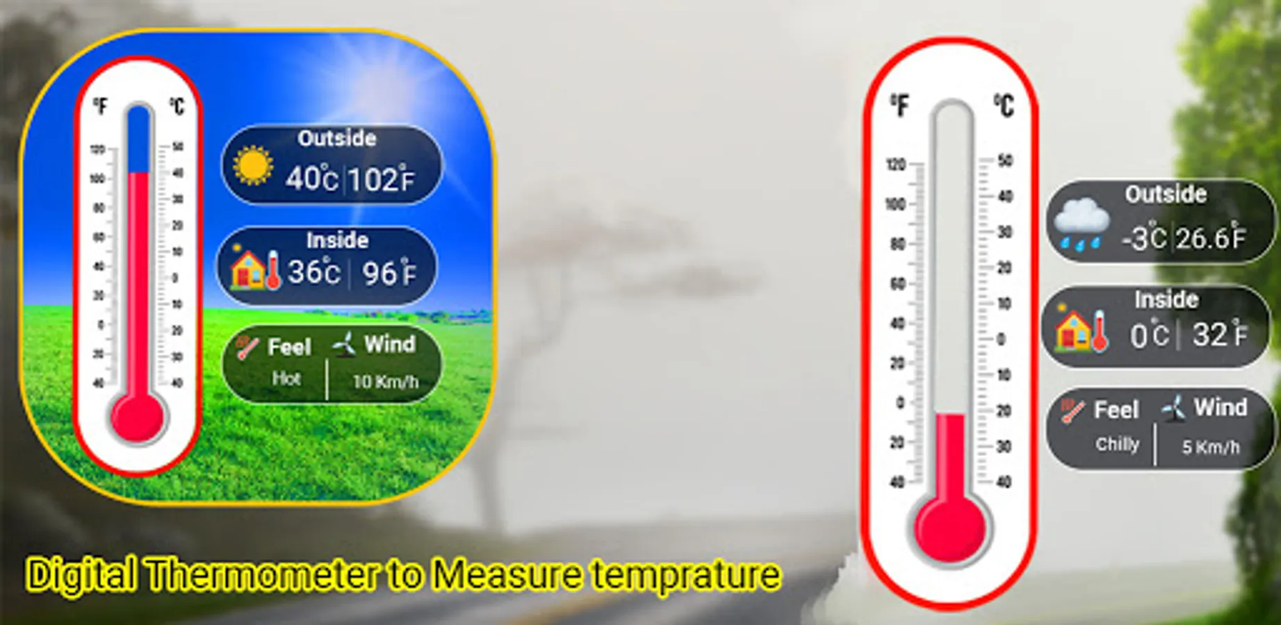 it’s a digital room temperature measure thermometer app which is the best thermometer app to measure room temperature in Celsius (°C) and Fahrenheit (°F).This temperature thermometer check temperature of room as well as the outside temperature. This thermometer using phone sensors to check current temperature inside the room in Celsius (°C) and Fahrenheit (°F).Thermometer reader check room temperature by sensor and outside temperature by using your phone navigation. Thermometer weather shows weather icons with temperature to indicate the current weather outside. It’s a free temperature app in your phone if you are android user just open thermometer indoor and thermometer outside app and check temperature anywhere either in your office room or in your home. It’s a smart thermometer app. also you can check temperature in different months like what is the maximum temperature in march and so on .by using this thermometer inside outside app you can measure temperature of different cities if you are traveling somewhere like Temperature in new York, temperature in London and temperature in Sydney and so on.