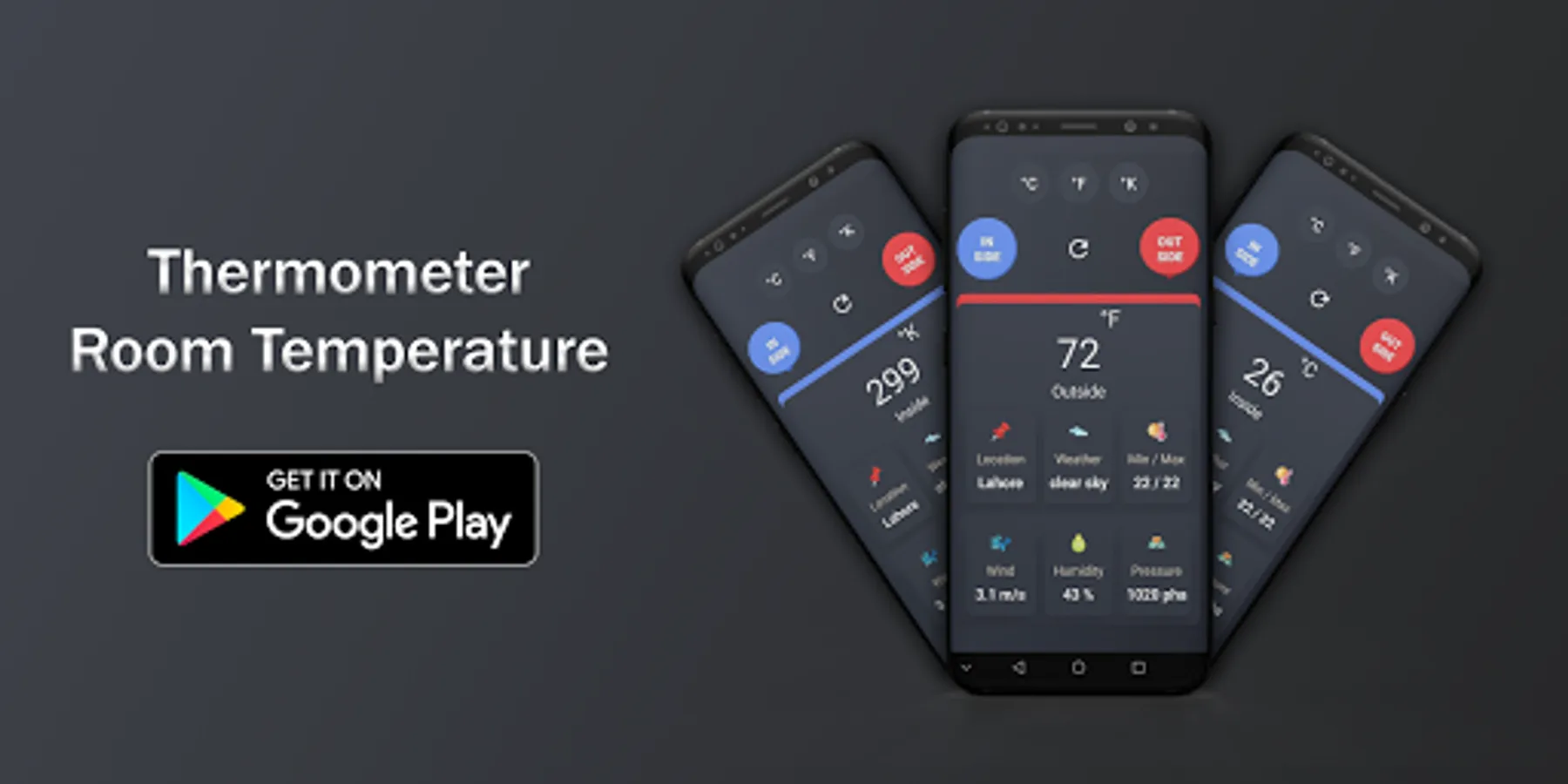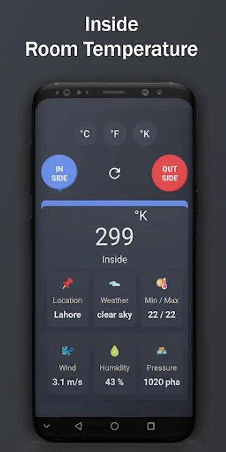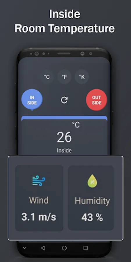 Thermometer Room Temperature Indoor, Outdoor app measure temperature in Celsius,Kelvin,Fahrenheit
