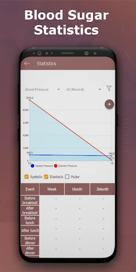 6 Blood Glucose statistics for week, month and 3 months including all events.