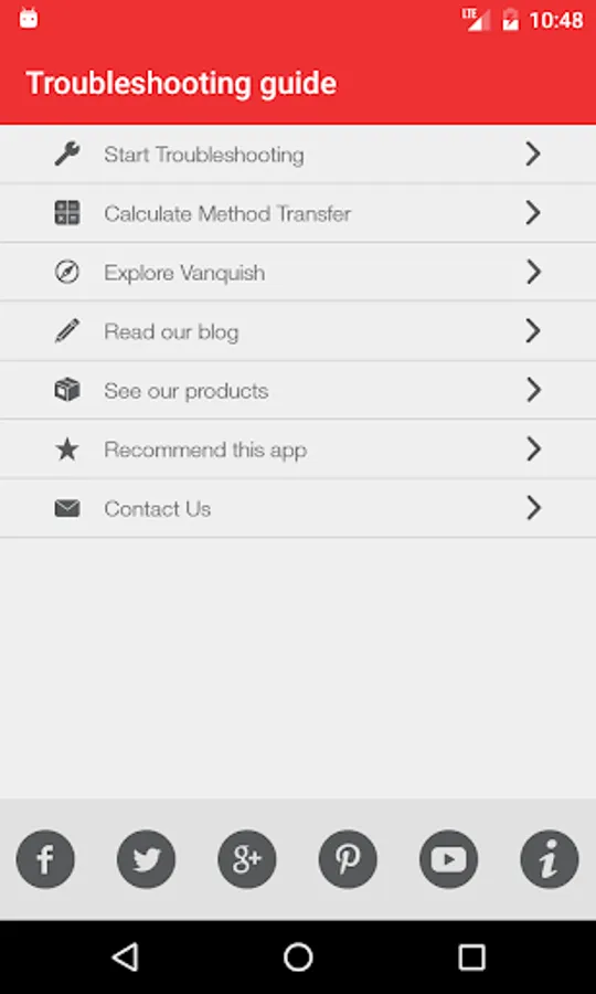 The app also offers interactive functions to connect to Thermo Scientific social media, to recommend the app to a friend, and to contact Thermo Scientific for further support. By simply tapping the Share function, troubleshooting solutions can easily and instantly be shared among teams.