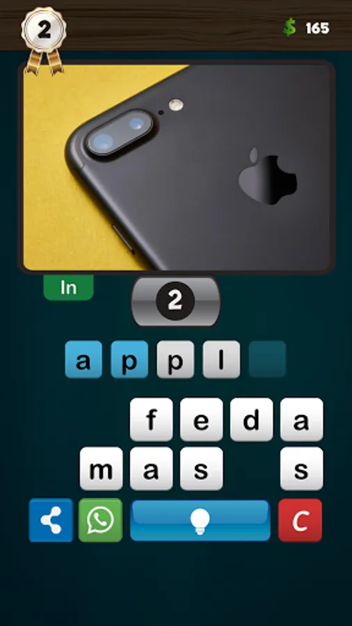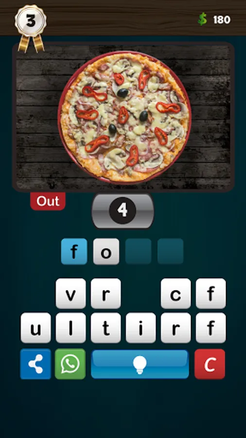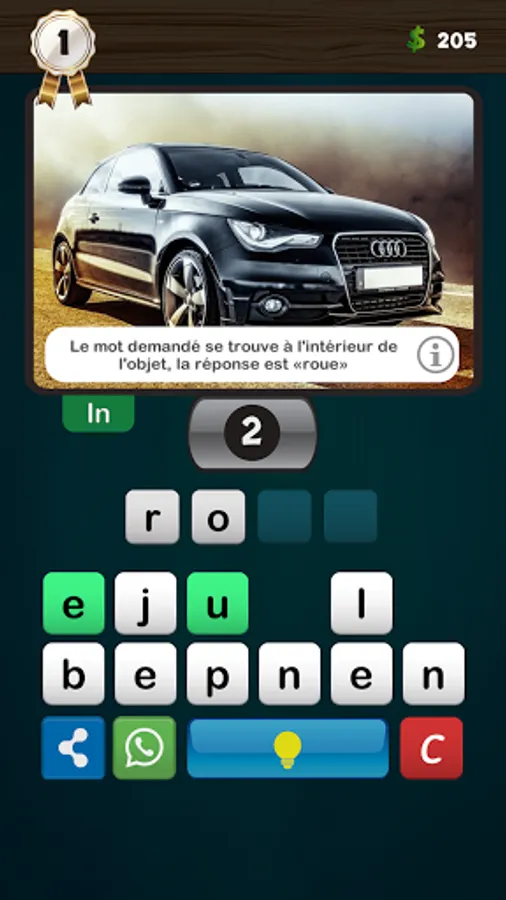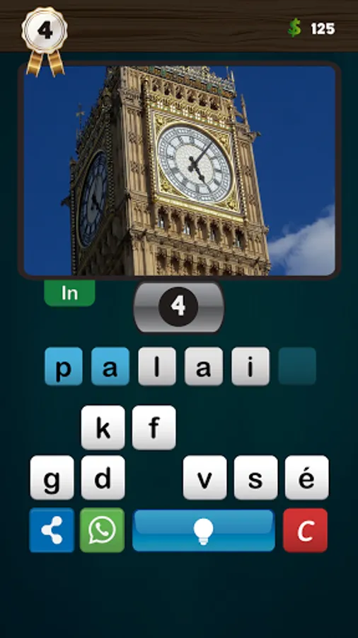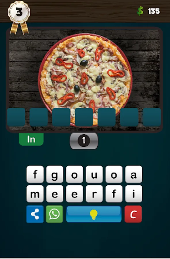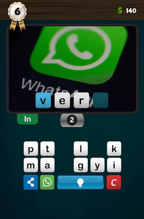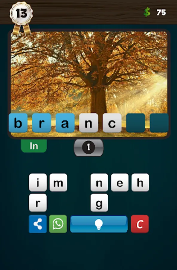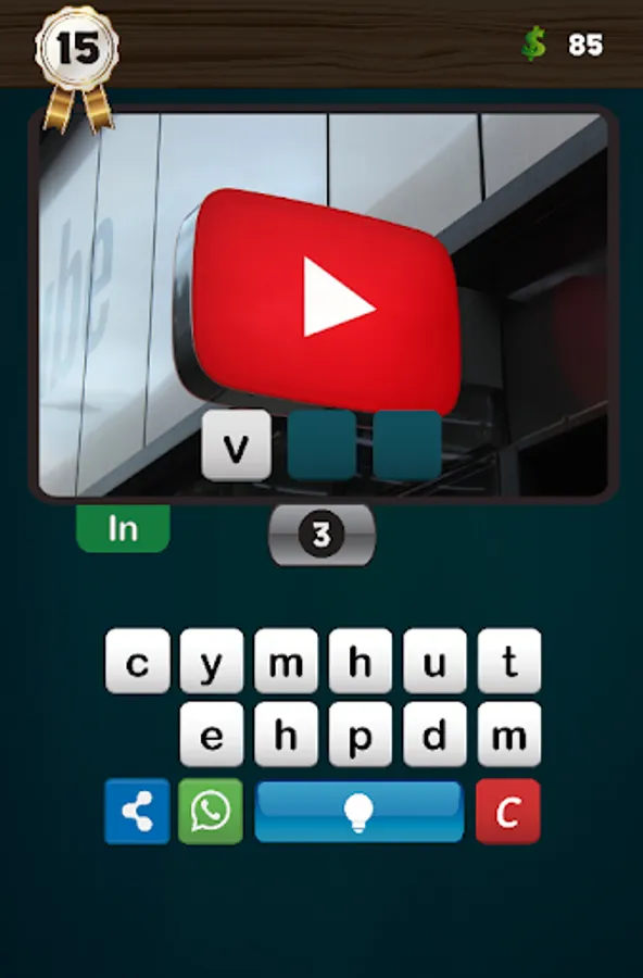 The keyboard has the help button, which in turn contains a lamp, if the lamp is yellow (that is, if the required word is more than three letters) the player can press it to display the first letter of the word, and he can leave the lamp on and try to find the correct word, if he succeeds he wins five coins. If the lamp is off (ie in white color), the aid is for thirty coins.