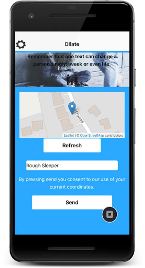 Dilate is a non-profit platform where the public can sign up and help homeless people. Simply send your location when with or near a homeless person and outreach teams from our partnered organisations will be immediately notified.