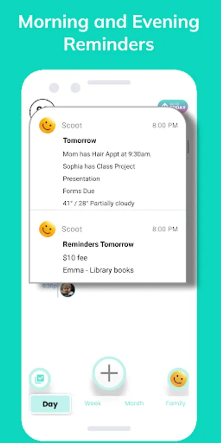 Scoot sends notifications in the morning and evening that tell you your events AND what you need to bring or remember for that day too.