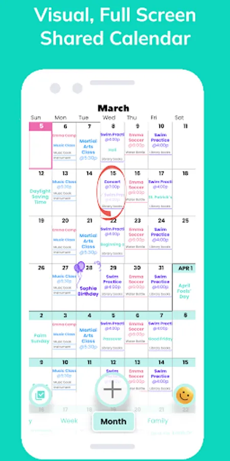 Using the app is a breeze, with a visual, full screen calendar, quick add events, and event auto save. Changes you make synchronize in real-time to your family member’s calendars.