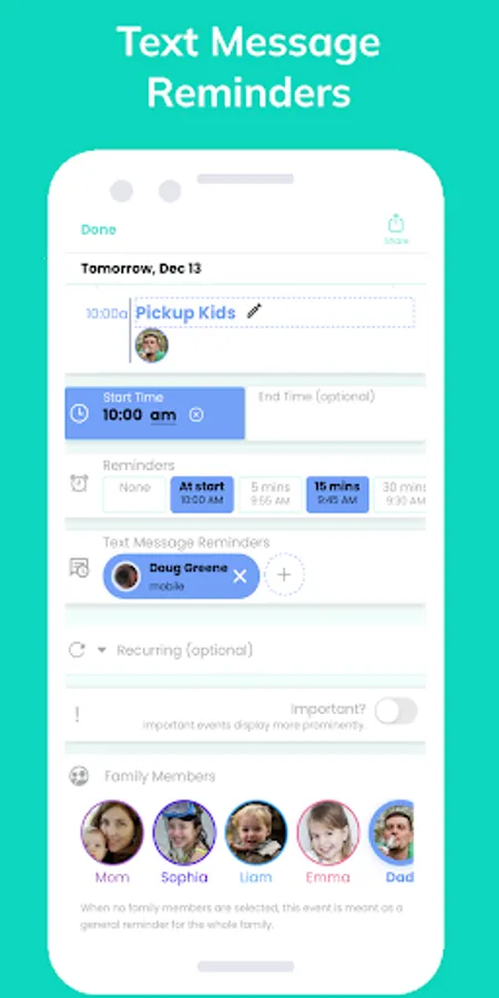 Make sure your family members are getting notified. You can set up your family member notification times. You can even set events to send text message reminders to those who don't have the app yet.