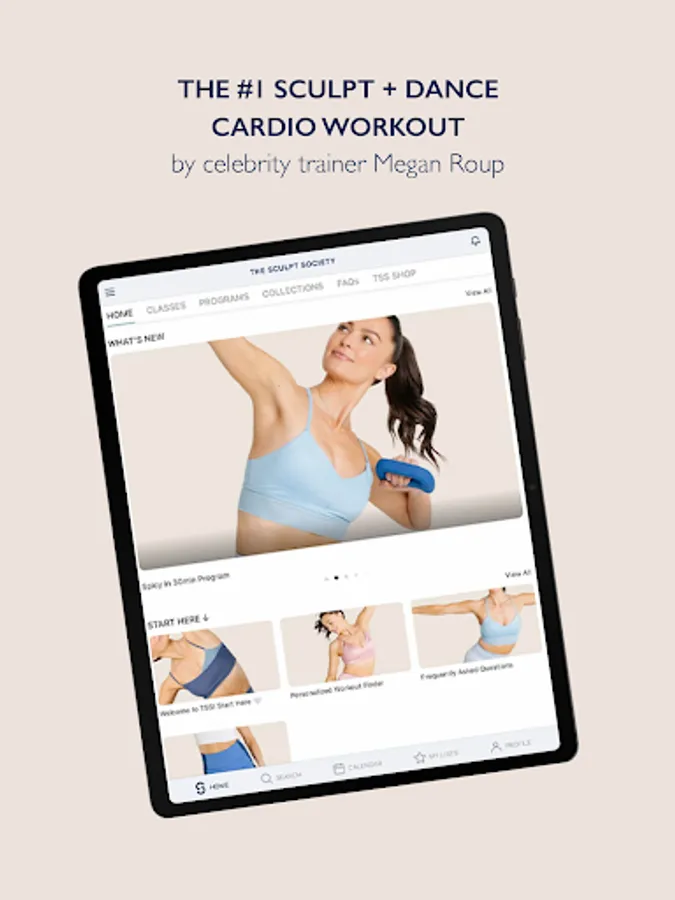 The Sculpt Society is the Sculpt and Dance Cardio workout created by celebrity trainer, Megan Roup, designed to empower women through movement. TSS is about feeling confident and strong in our own bodies and loving them for all that they do for us! The TSS method combines powerful sculpting and toning exercises that use bodyweight with easy-to-follow dance cardio for a fun and effective workout. Our goal is to give you a great workout in less than an hour - wherever you are. From beginner to advanced, the TSS method helps members see and feel results.