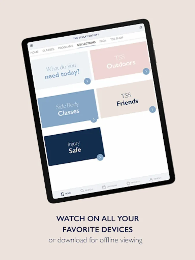 -Stream from any device, anywhere in the world. Whether you’re working out at home, while traveling or taking TSS with you to the gym, our mobile workouts are available anywhere in the world. Download the TSS app on your mobile device or tablet, tune in from your computer or stream from your television.