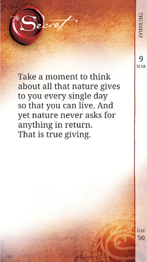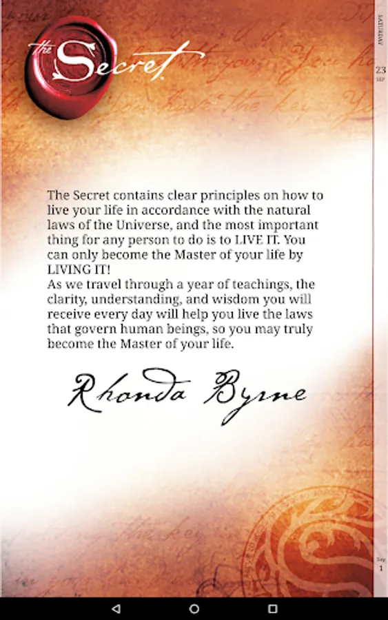 Now you can carry The Secret's wisest, most compelling teachings with you wherever you go and live The Secret 24/7, 365 days a year with The Secret Daily Teachings App for Android devices.
