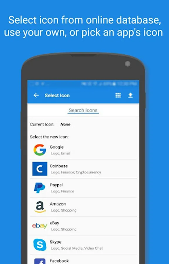 - Use custom icons for your items: upload your own, or use the icon of an installed app