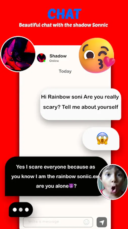 👉Chat with Shadow sonic's virtual character, easy and intuitive controls and more than 10 unique levels for chat messenger with your favorite singer creepy mommy and sonicy dash.