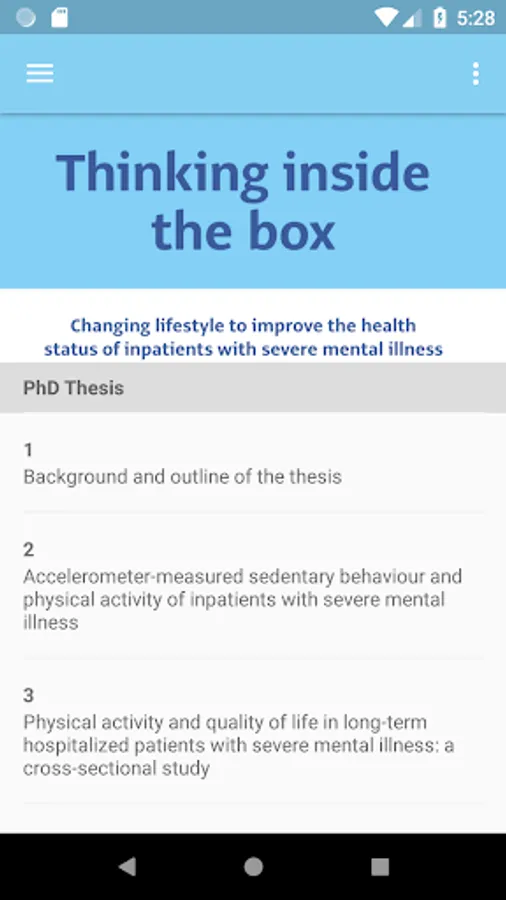 - Extensive overview about changing lifestyle to improve health status or inpatients with severe mental illness