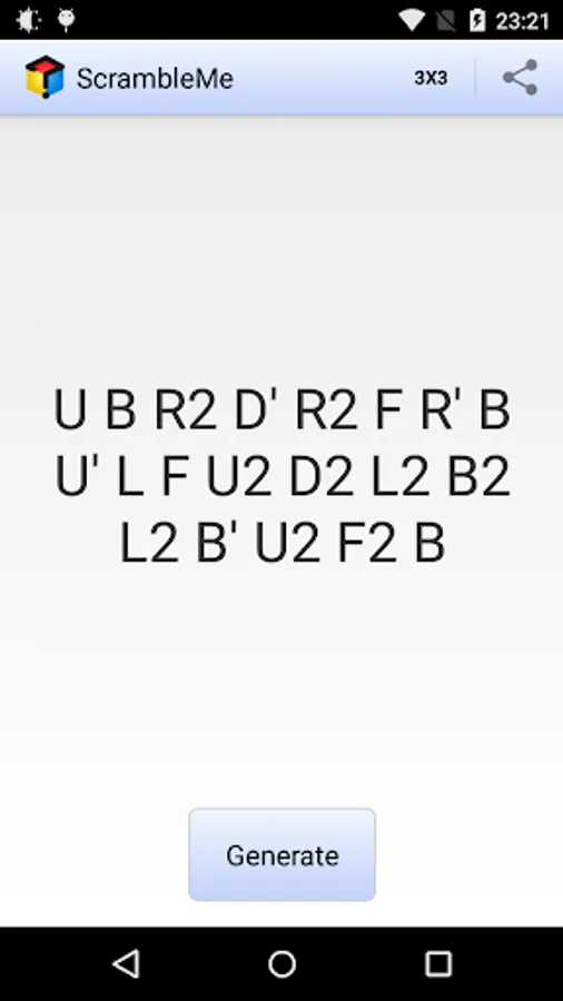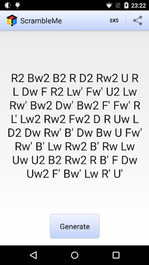 For fairness the WCA generates the same scramble for anyone in a given round. Now you can generate and share your own scrambles! Ensure that none your friends are scrambling their cube with a pre-memorized or unfair scramble with ScrambleMe.