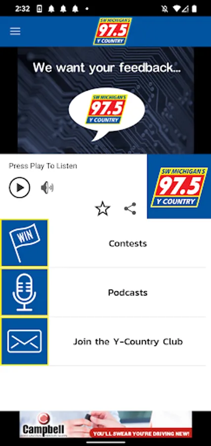 97.5 Y-Country is Southwest Michigan's Country! Listen live to catch all of your favorite Y-Country shows including the Matt Malone Morning Show, Nights With Elaina, After Midnight with Granger Smith, Fresh Picked and more! Also enter to win get contests, check out our podcasts, send us voice clips using the open mic feature, and more! All for free!