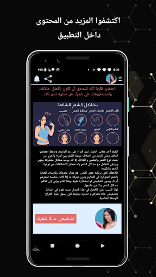 The application of recipes for treating hair problems is a specialized application that aims to provide useful information and advice for people who suffer from various problems in the hair. The application covers a wide range of possible problems such as hair fall, split ends, dryness, dandruff, oily hair, and more.