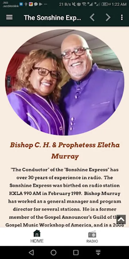 Bishop C. H. Murray's Sonshine Express was created to offer to the Gospel music family a place where you can hear the "Gospel classics" that will never die, as well as "Today's Gospel hits". We want to make sure that there is a variety of Gospel music genres in rotation to reach all lovers of Gospel music.