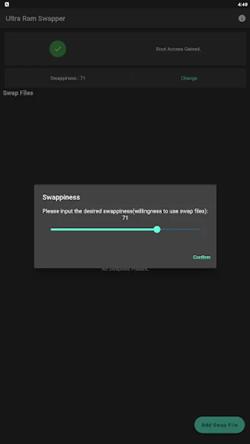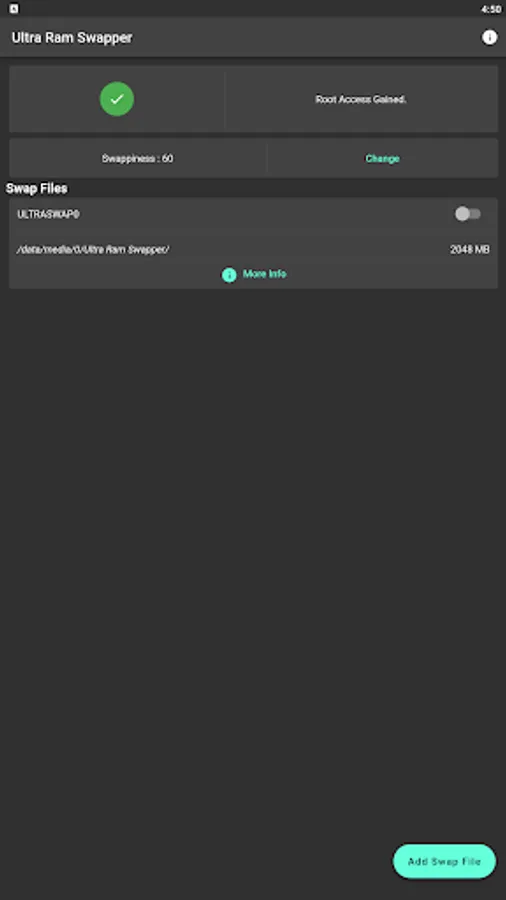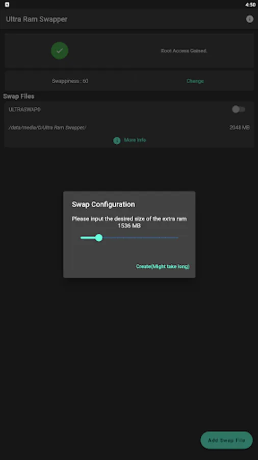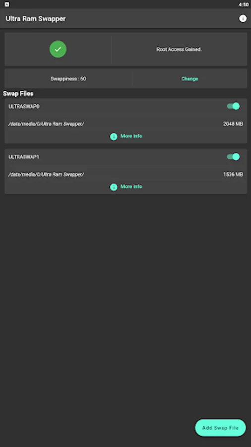 An Application to easily create, enable/disable, and delete multiple swap files(Virtual Memory) in a rooted android.