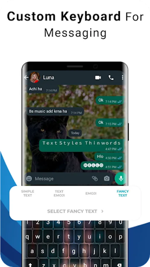 Use Custom Keyboard with 100+ Text Styles for Whatsapp.