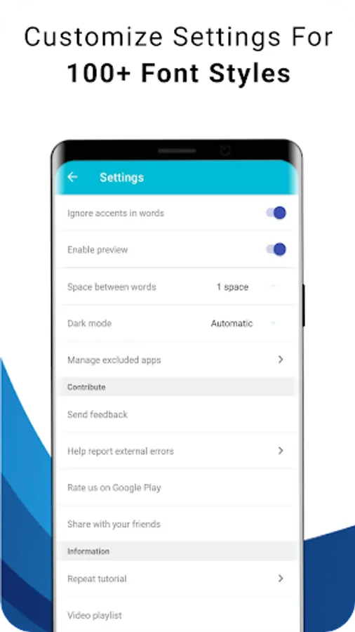 Avail this new way of expressing your creativity on Instagram with stylish fonts. Use the font generator app to try out new text styles and fonts every day on your Instagram stories. This special app full of font styles contains a smart stylish keyboard with smart language and text style in WhatsApp messages. Let go of your old texting routine and introduce into your text styles and fonts by using cool fonts, symbols, and letters. The new stylish fonts app features a wide collection of cool fonts and custom keyboard which you can use anywhere including Whatsapp. All you need to do is preview the different text styles, type your message, copy the style with the new font you like, and paste it into any messenger app like Instagram or you can use our custom keyboard as well. Send the text with the new font style to any recipient using our stylish custom keyboard and he/she will be able to see stylish fonts on their device too. Font style changer Bring you many font styles and stylish text in one application.