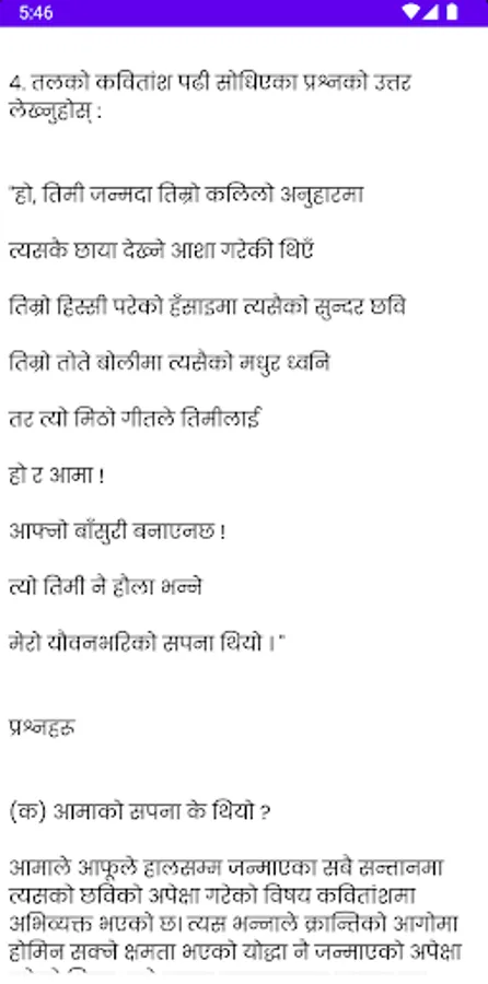 With its user-friendly interface and easy-to-understand explanations, Class 12 Nepali Guide 2080 is the perfect tool for getting outstanding results in Class 12 NEB Board Exams of Nepali subject. This app provides solutions and answers to all questions presented in the book, making it easier for students to study and learn at their own pace.