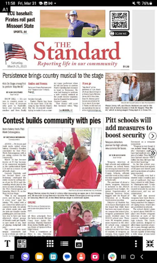This is a digital replica of The Standard. This app is part of your all access membership. If you have questions about using the app please contact us at customercare@apgenc.com or call (252) 329-9505.