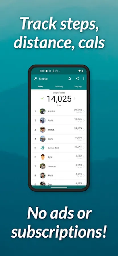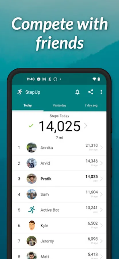StepUp gives you two virtual friends – Active Bot and Chill Bot – who walk 10K and 2K steps respectively. If you'd prefer to keep your fitness journey private, you can compete against them while still enjoying the benefits of friendly competition via a leaderboard and pacer.