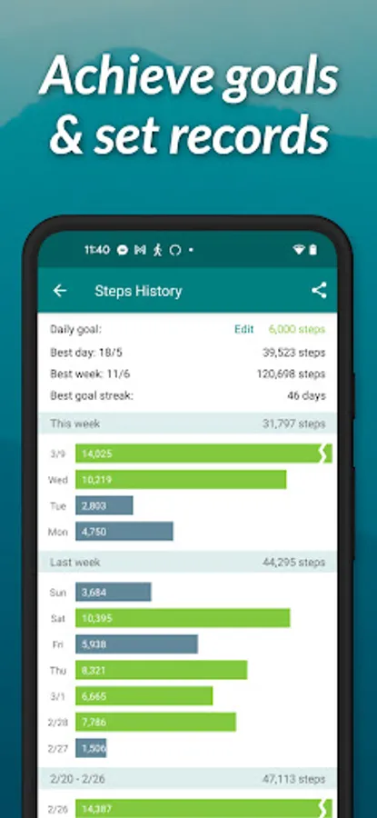 StepUp step counter has a simple, intuitive design. And most importantly no ugly ads, unlike other free pedometer apps. It is an elegant step tracker app to help you step up.