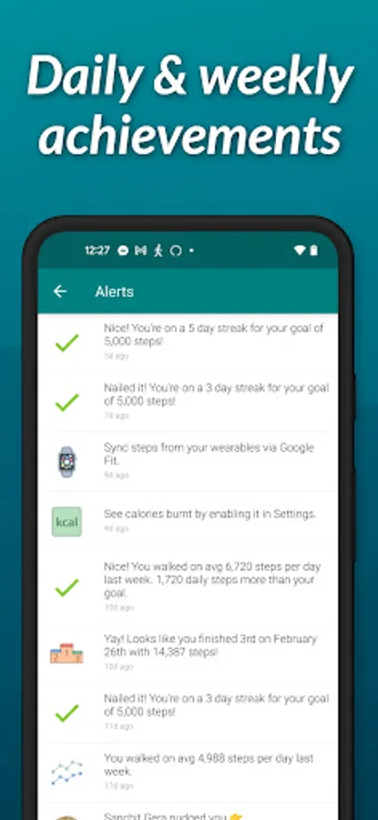 You can also sync from Google Fit supported wearable pedometers and fitness/step trackers like Fitbit, Android Wear devices, Xiaomi, MiBand, Moto 360, Garmin, Withings and many more to Step Up step counter app.