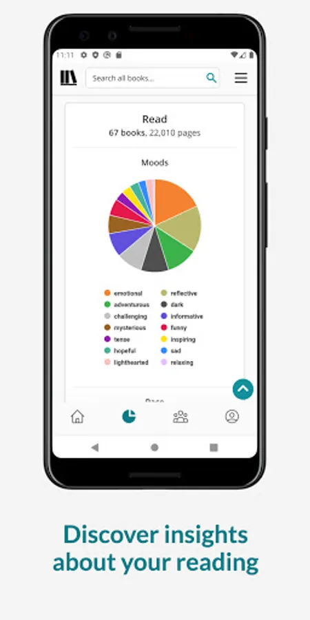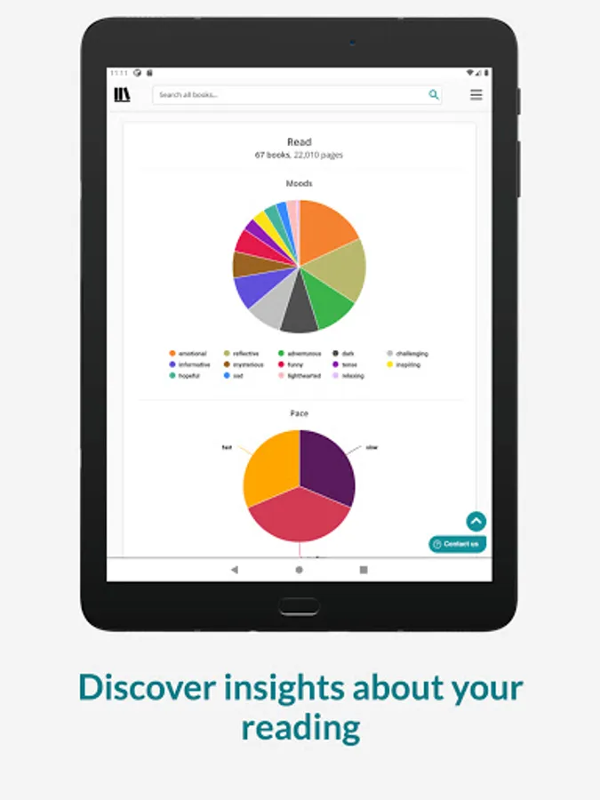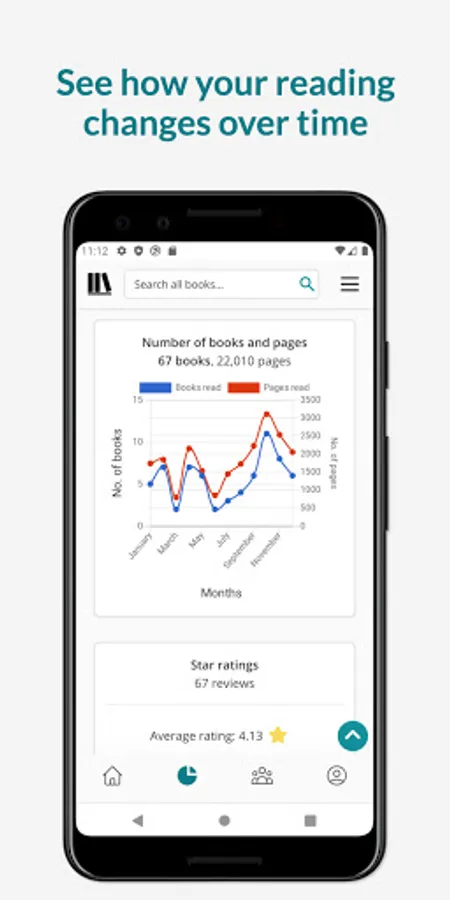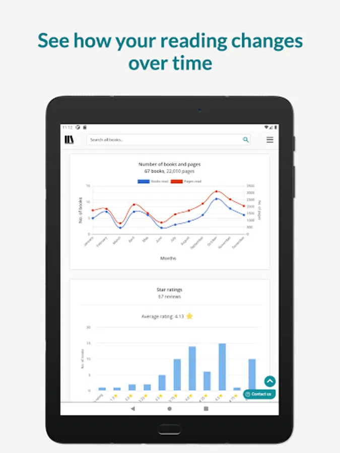 Simple tracking and insightful stats: Easily track and learn about your reading habits with our wide range of charts and graphs. See how your reading develops over time and use that to help you pick better books.