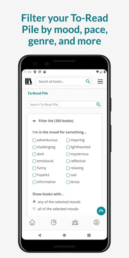 Discover books by mood: In the mood for something adventurous, funny, and fast-paced? What about a darker, slower, more emotional read? Mix and match our comprehensive set of filters to choose your next perfect book.