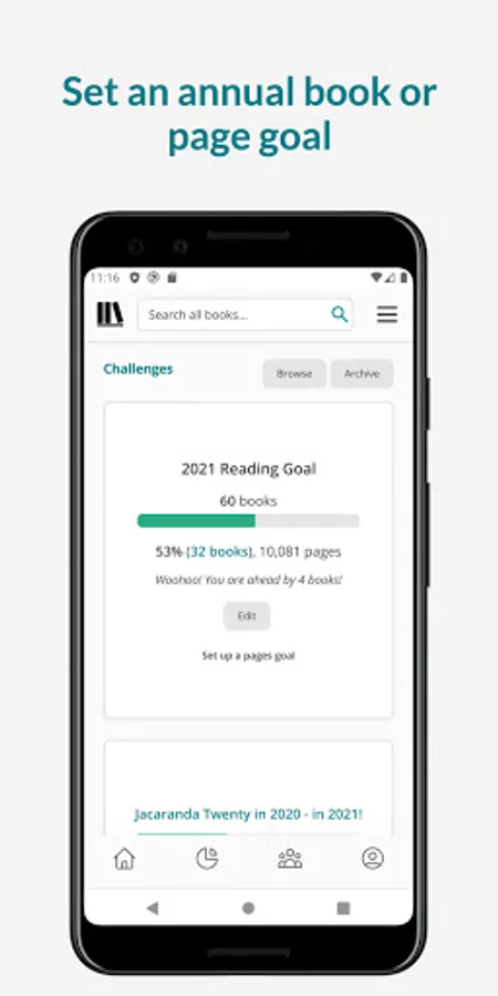 Reading Challenges: Want to read one book from every country in the world? Or how about read a book per week across a range of genres? Our reading challenges feature help you set up personal goals or join in with others.