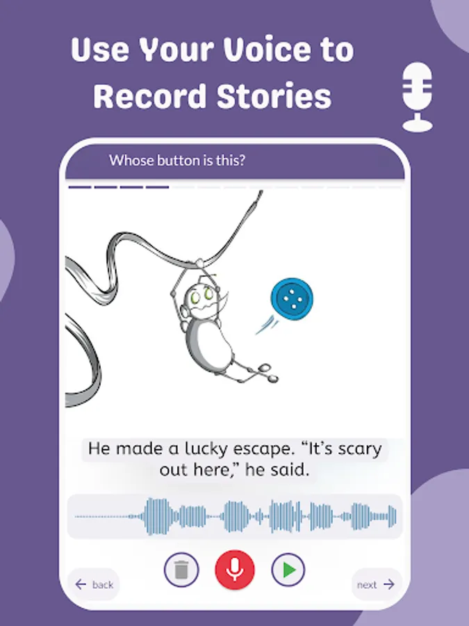 With our app, record your voice reading story books and transform them into authentic audiobooks. Select a book, tap record, and bring your narration to life with music and sound effects. So your kids can listen to your voice while reading beautifully illustrated books.