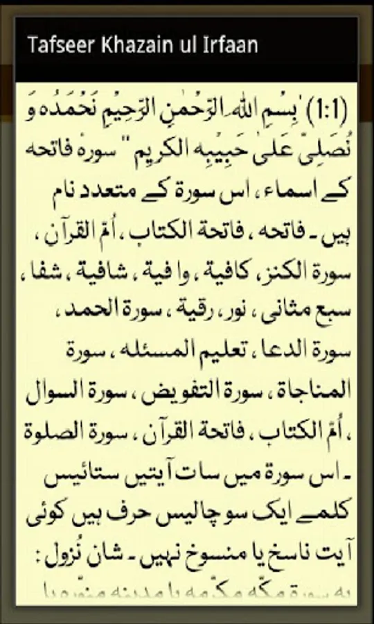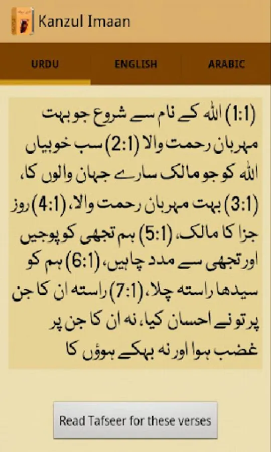 - Read translation alongside Urdu Tafseer (Khazain ul Irfaan by Allamah Sayyid Naeemudin Muradabadi)