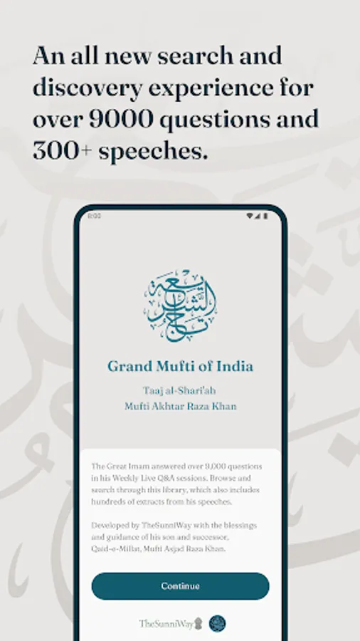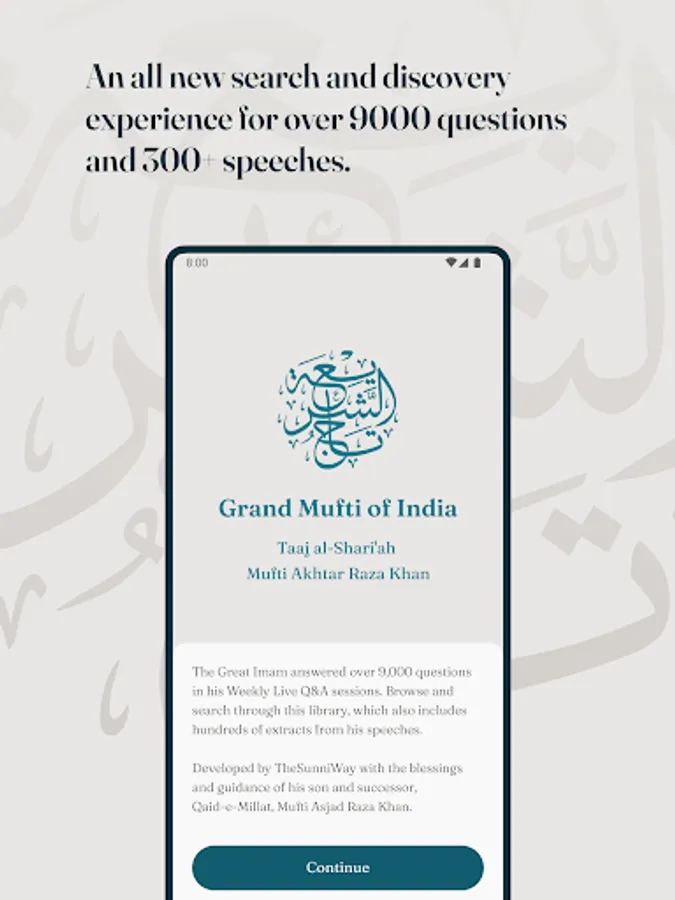 Search and listen to the answers from the Weekly Q&A sessions with the Grand Mufti of India, the Great Grandson of Ala Hazrat, Sayyidi Taaj al-Shari'ah Mufti Akhtar Rida Khan on your phone. You can also listen to extracts from hundreds of speeches