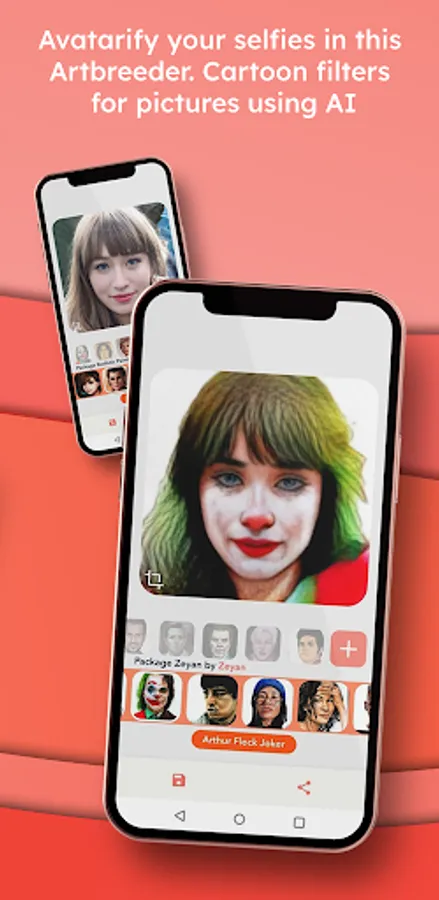 Just make a selfie and select the style you want your alter ego cartoonify, with AI caricature maker you can design your twinface. AvatART can draw your face like a caricature, a daemon, an anime, the Joker, a manga drawing or just AI sketch and use this cartoon in Instagram, Facebook, Whatsapp, Flickr, Tumblr, Snapchat, TikTok, VK and Pinterest or just save it into your photo reel and share it with your friends.