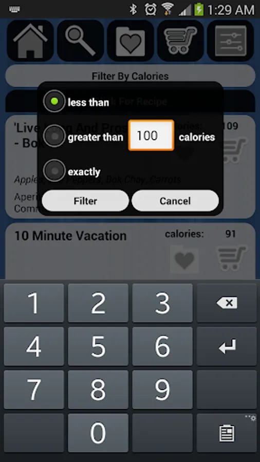 -Calorie Information and filtering capability