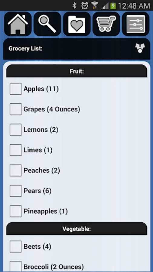 -Advanced Grocery List - displays the exact amount of ingredients needed for all recipes marked