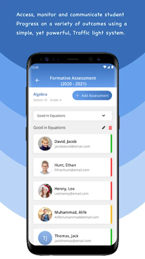 Track formative assessments of learning objectives, learning behaviors, and/or social behaviors using a unique Traffic Light design, now with a five-tiered color system