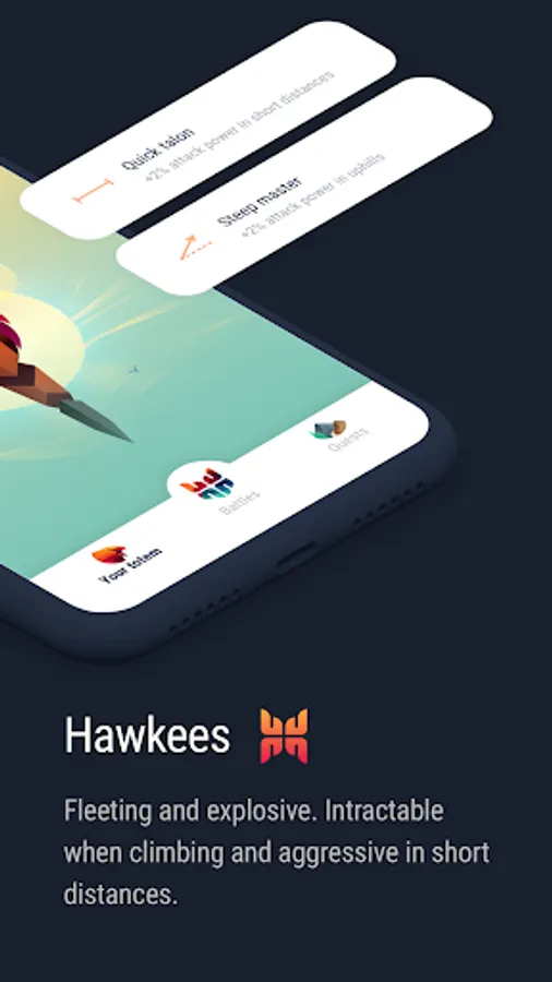 - Fleeting and explosive. The Hawkees attack when you least expect it with sharp changes in pace. Intractable when climbing and aggressive in short distances.