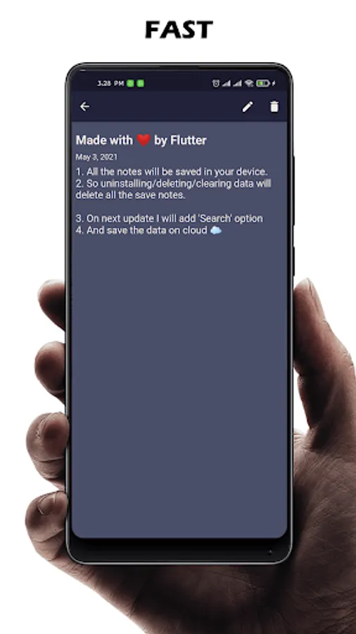 [IMPORTANT: As you know this app store data on your device so if you delete/uninstall or clear data of the app your data will be lost. Don't worry on the next update you can save the data on cloud and the process will be End-To-End Encrypted. And search option will be added as well in shah Allah]