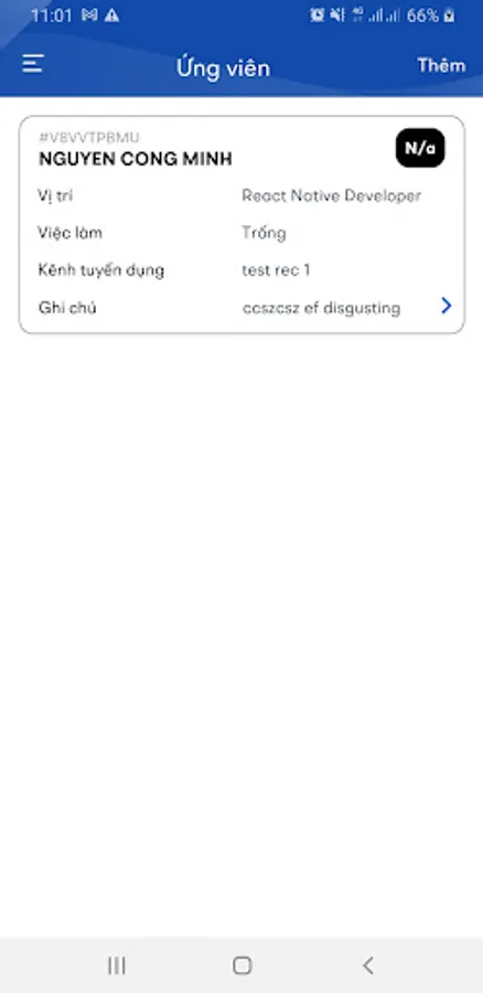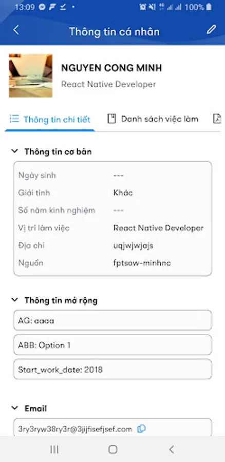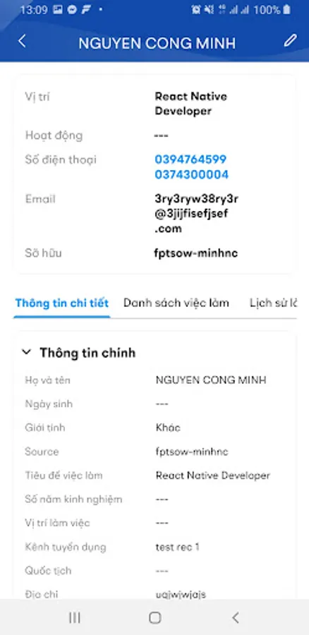 - Main functions: Create CV, upload CV, view candidate list, view candidate details, update candidate information, ...