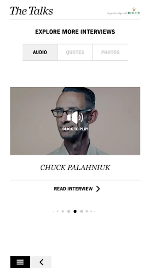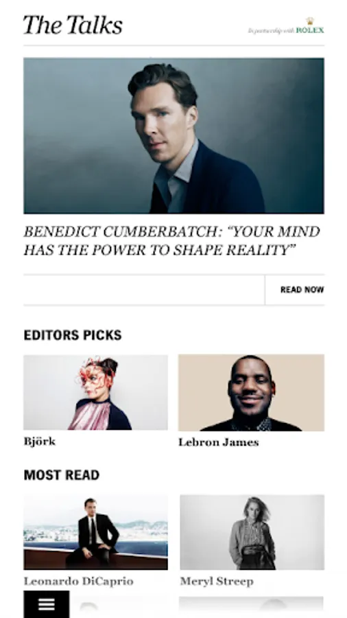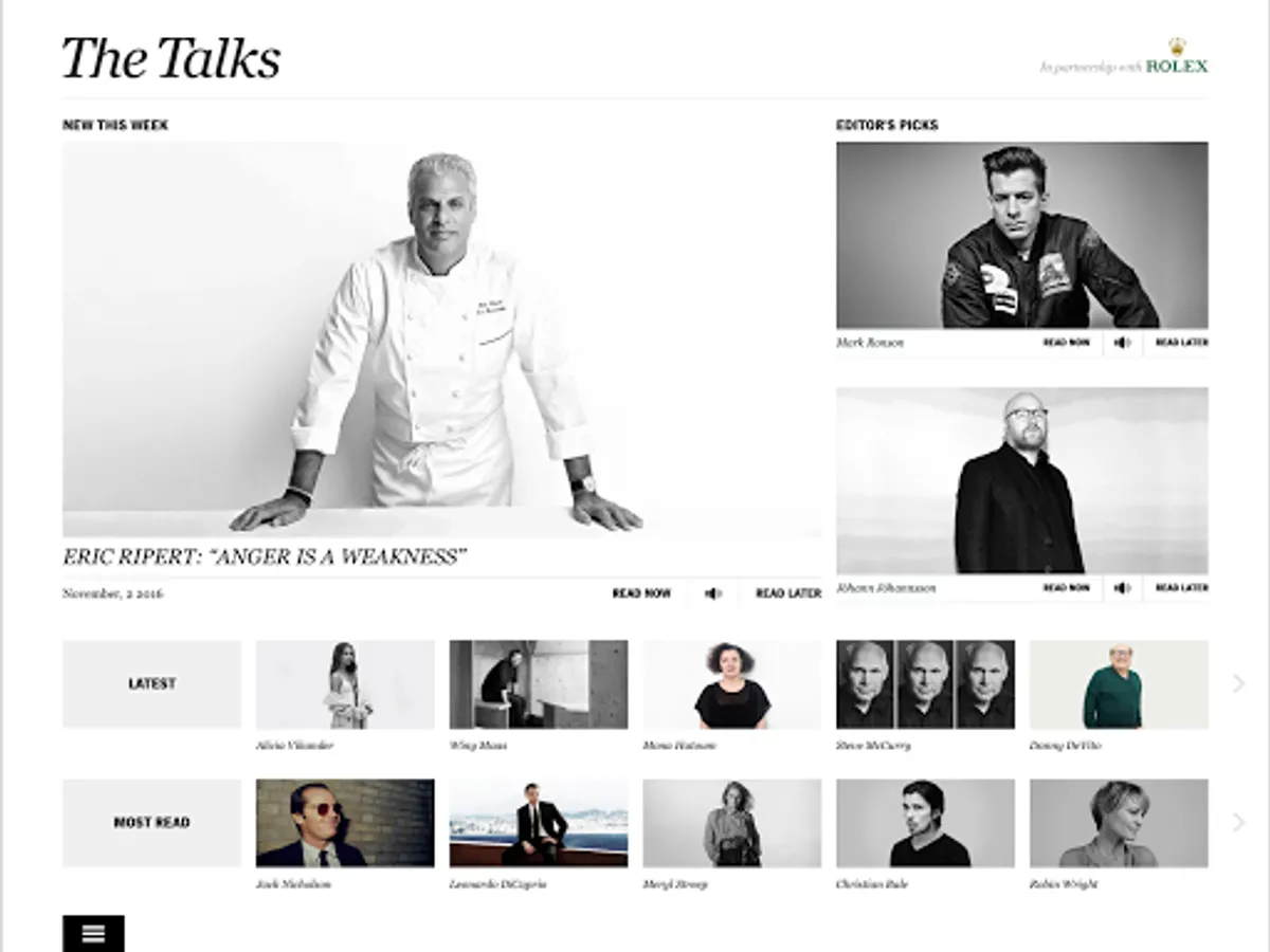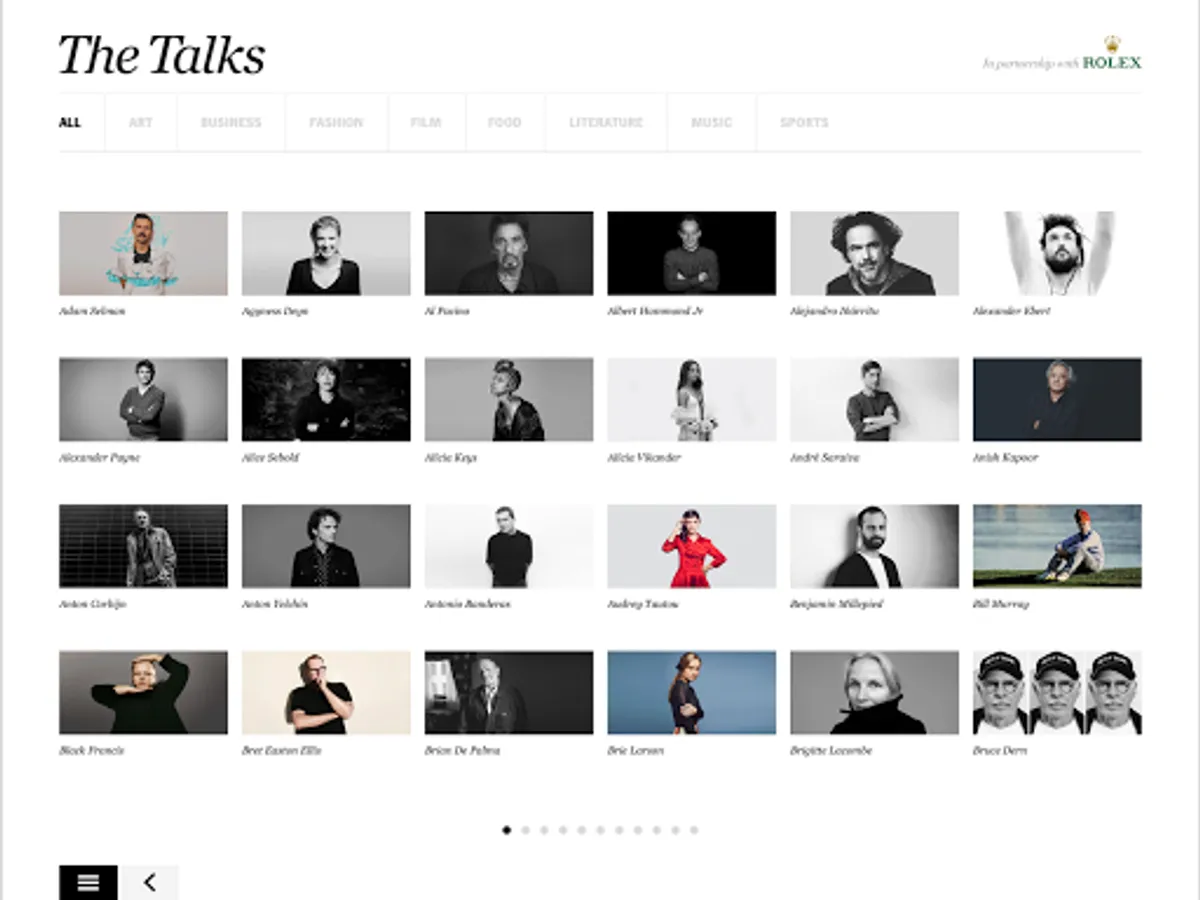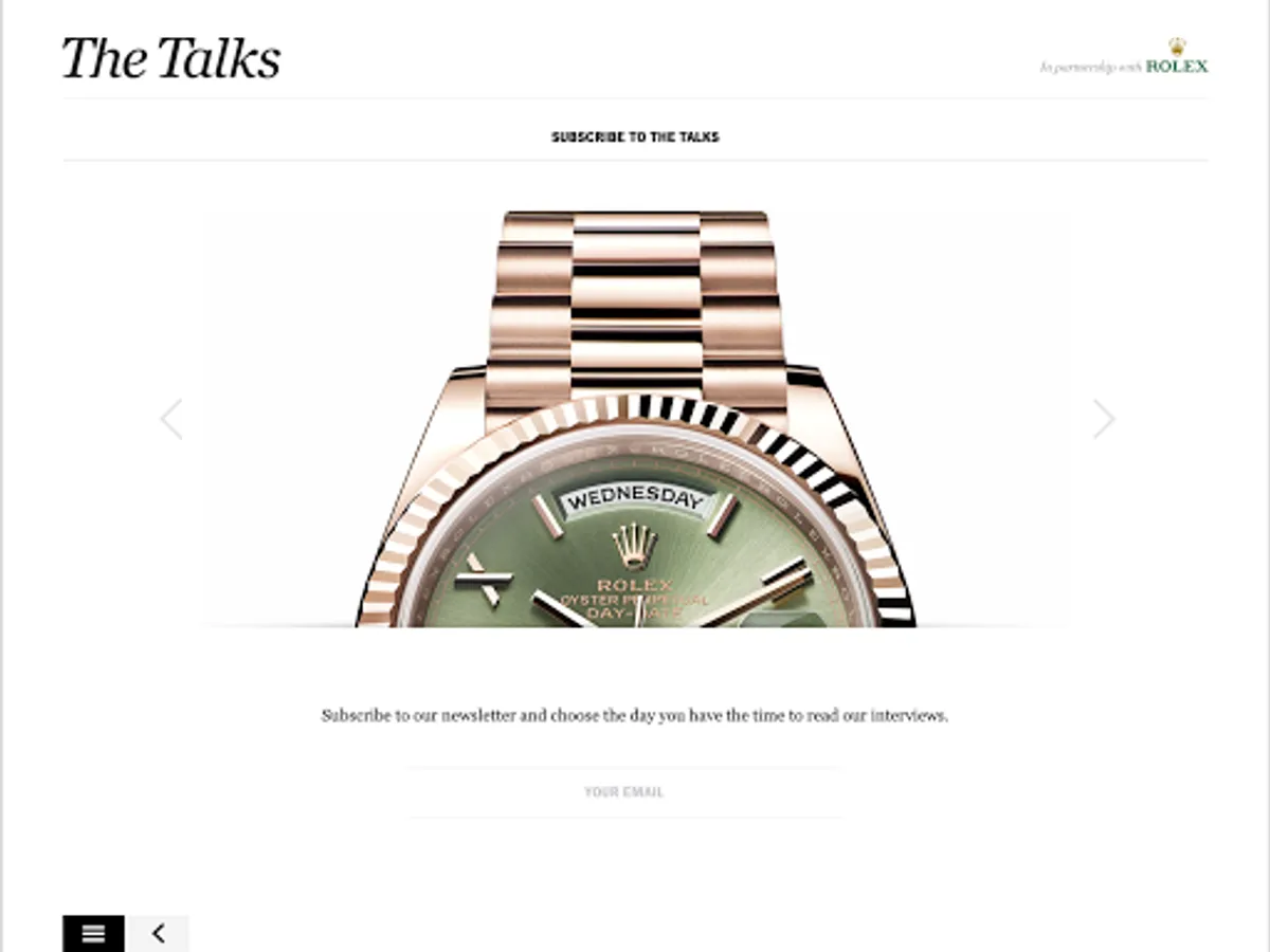 The Talks is an ever-growing collection of inspiring interviews with leading creative voices from the fields of art, film, fashion, food, music, photography, design, architecture, sports, literature, and more.