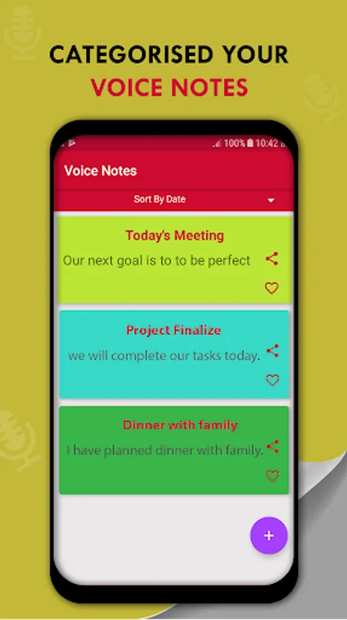 Organize life and do more with Speak Notes! This is a free speech notes application with the ability to recognize voice. You can dictate voice notes and we will transcribe them .Also add a reminder to every voice note and audio text that you enter.